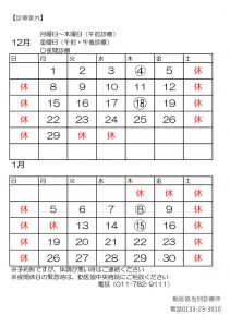 | 午前 | 外来診療 | 外来診療 | 外来診療 | 外来診療 | 外来診療 | 休診 | ー |
