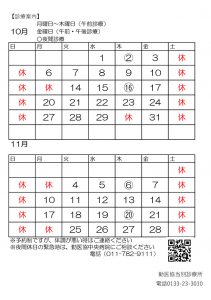午前 | 外来診療 | 外来診療 | 外来診療 | 外来診療 | 外来診療 | 休診 | ー |