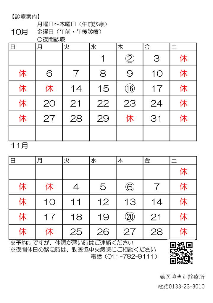 夜間 | ※夜間診療 (第1、第3のみ) |