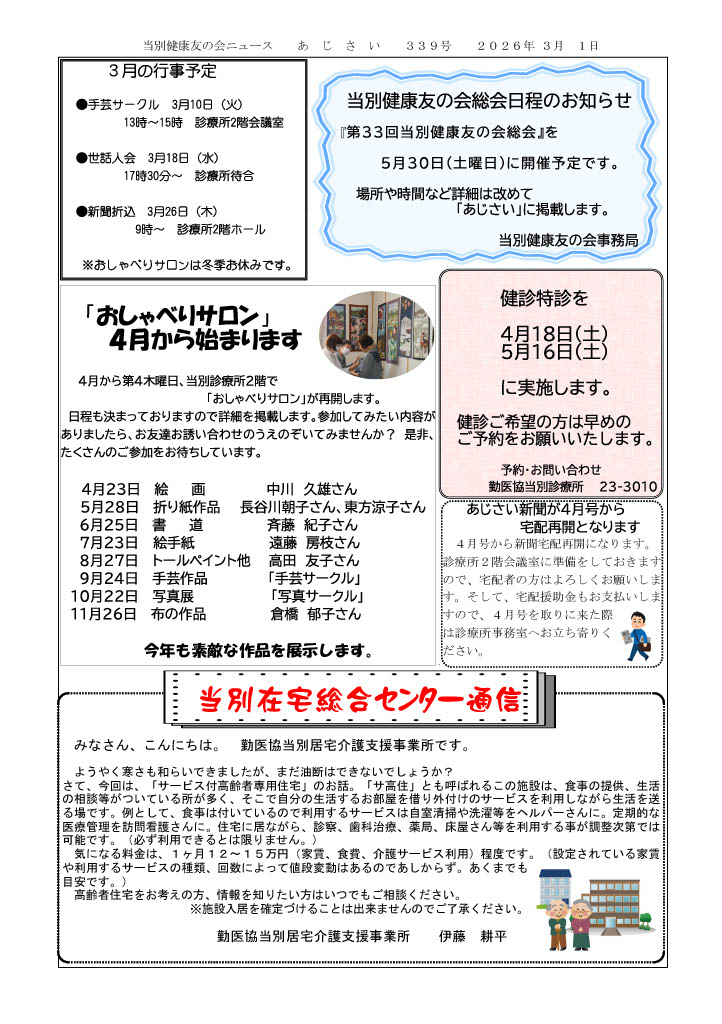 毎月友の会新聞が届けられます